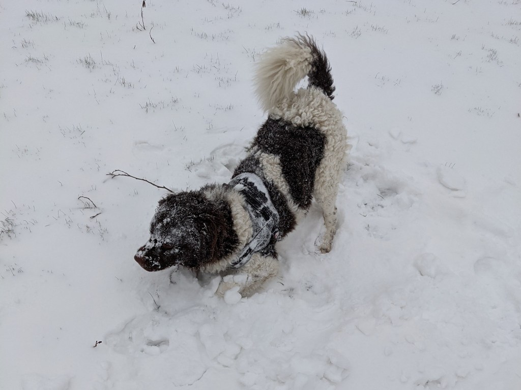 Gosse is een hele mooie compacte hond geworden, vergelijkbaar met Aafke. Hij is niet zo groot, maar iets groter dan Tyske dus ik schat hem 55cm hoog. Hij weegt 29kg.