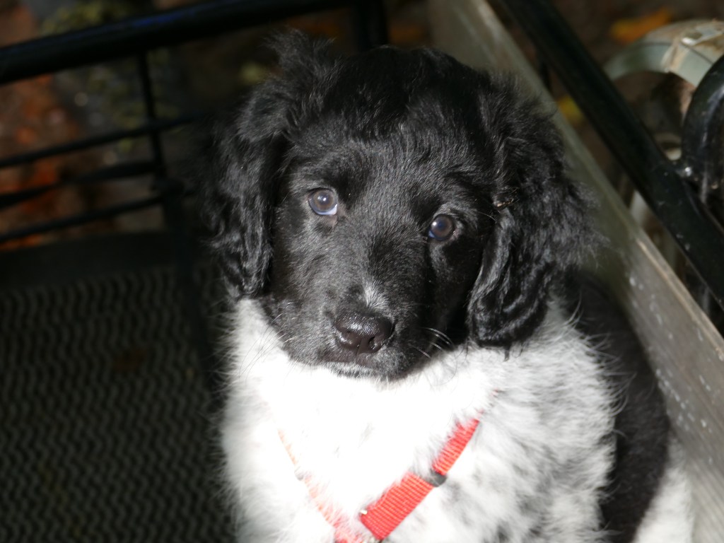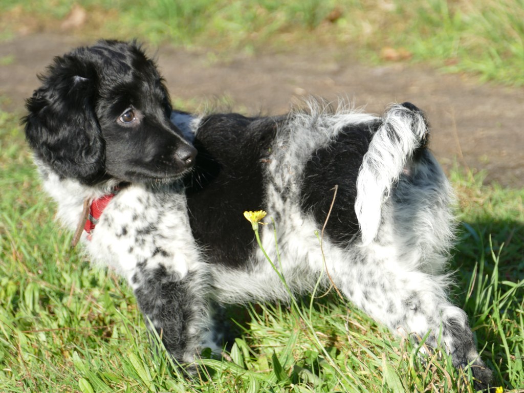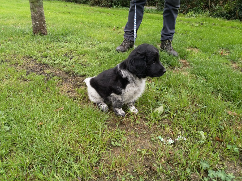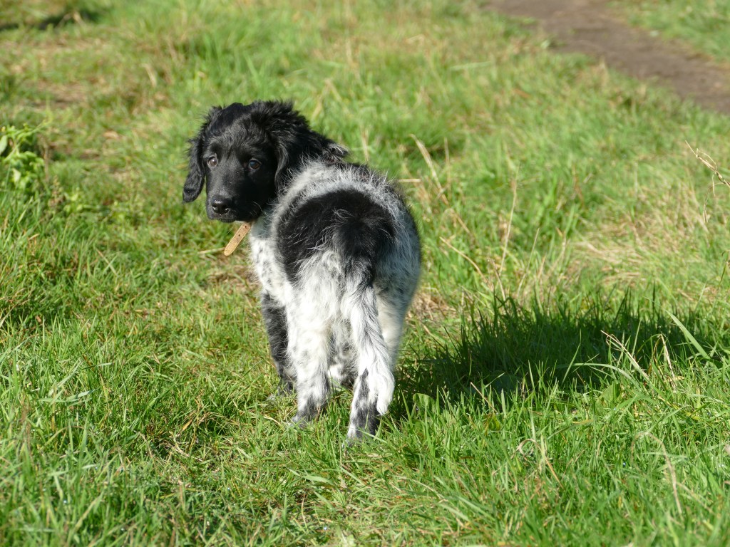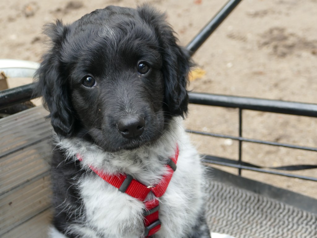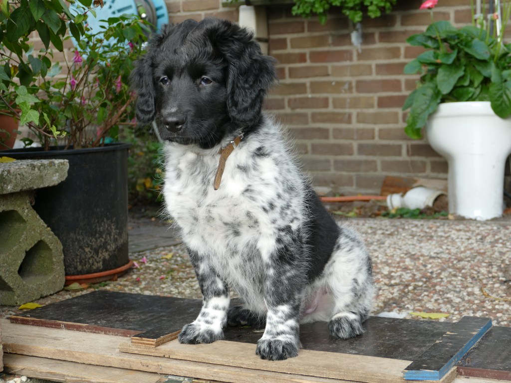 Jane: Ik heb Jane ontmoet op de NVSW Fokkersdag in het najaar van 2019. Zij is secretaris van de UKSA (United Kingdom Staby Association). Zij vroeg me wat te vertellen over het karakter van de Wetterhoun. Ze willen heel graag de Wetterhoun introduceren in de UK. Ik vertelde ook dat ik wel eens een pup opvang als die nog wat langer moet blijven voordat hij naar het buitenland gaat. Het contact werd gelegd en dat contact bleven we houden. Jane zorgde ook voor het contact met de baasjes van Aafke. Half september 2020 kreeg ik een mailtje van Jane met de vraag of ik een Stabij pup wilde opvangen. Er zouden 4 pups naar de UK gaan, 2 teefjes en 2 reutjes waarvoor ze opvang nodig had totdat hun Rabiës inenting geldig is. Een daarvan is Otto, 28 september hebben we hem opgehaald bij de dochter van de fokker.
