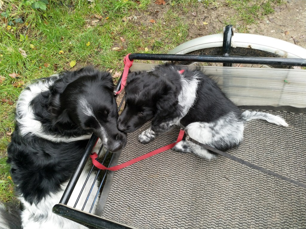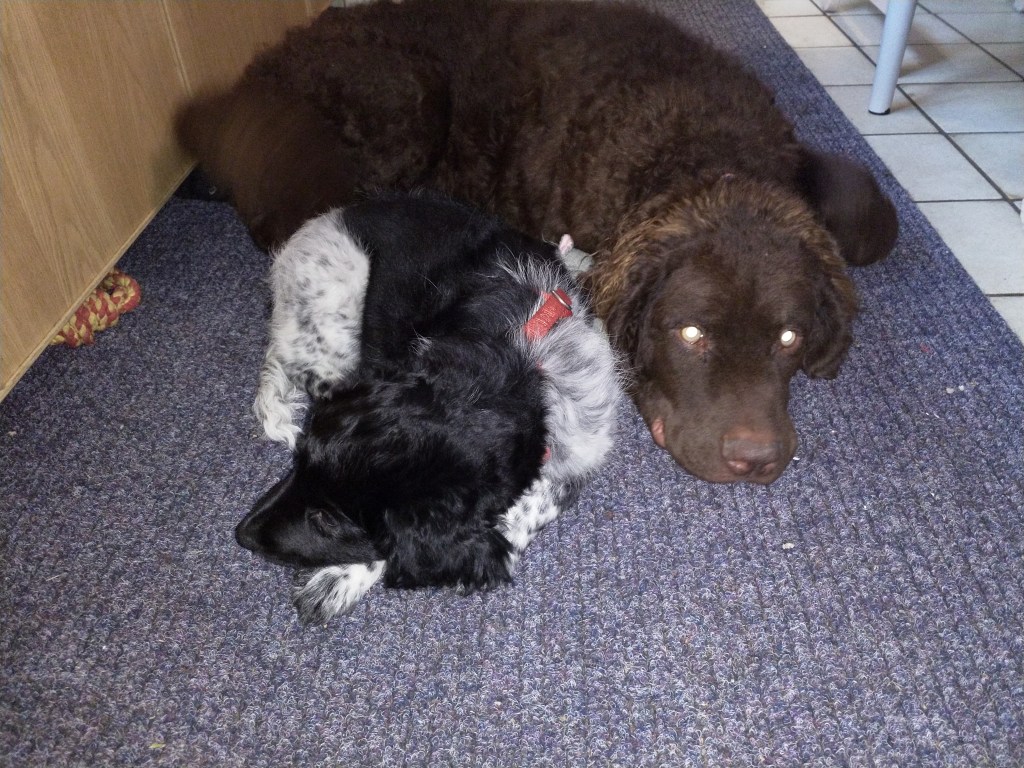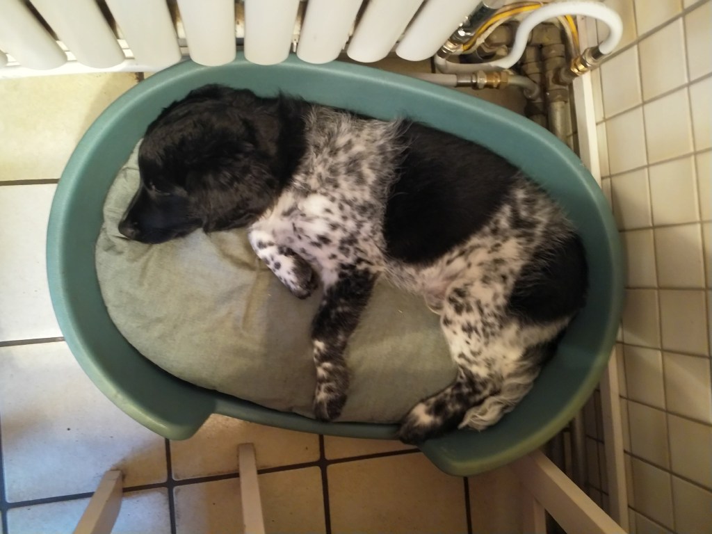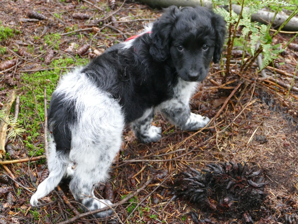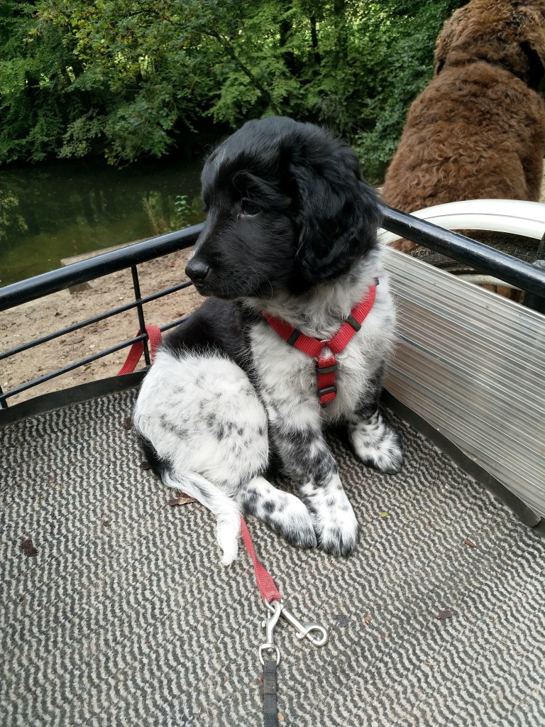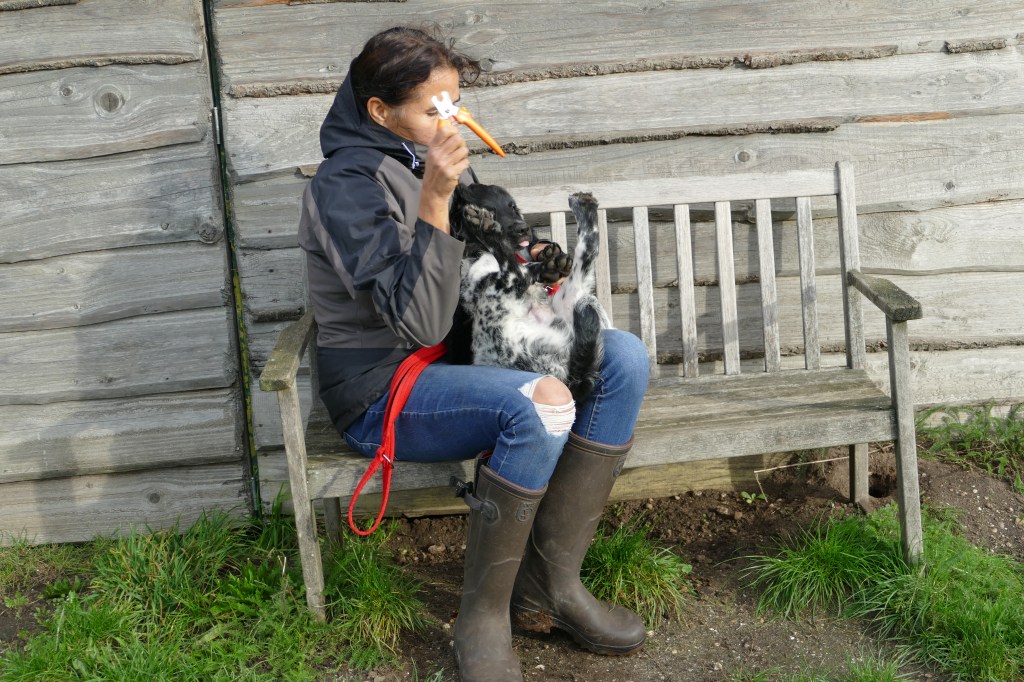 Jane: Ik heb Jane ontmoet op de NVSW Fokkersdag in het najaar van 2019. Zij is secretaris van de UKSA (United Kingdom Staby Association). Zij vroeg me wat te vertellen over het karakter van de Wetterhoun. Ze willen heel graag de Wetterhoun introduceren in de UK. Ik vertelde ook dat ik wel eens een pup opvang als die nog wat langer moet blijven voordat hij naar het buitenland gaat. Het contact werd gelegd en dat contact bleven we houden. Jane zorgde ook voor het contact met de baasjes van Aafke. Half september 2020 kreeg ik een mailtje van Jane met de vraag of ik een Stabij pup wilde opvangen. Er zouden 4 pups naar de UK gaan, 2 teefjes en 2 reutjes waarvoor ze opvang nodig had totdat hun Rabiës inenting geldig is. Een daarvan is Otto, 28 september hebben we hem opgehaald bij de dochter van de fokker.