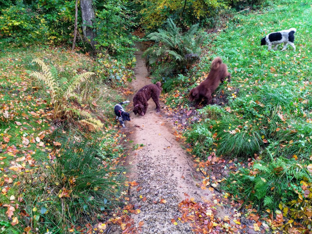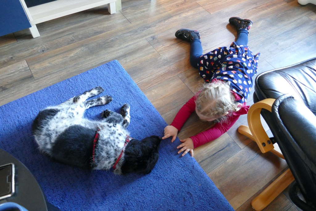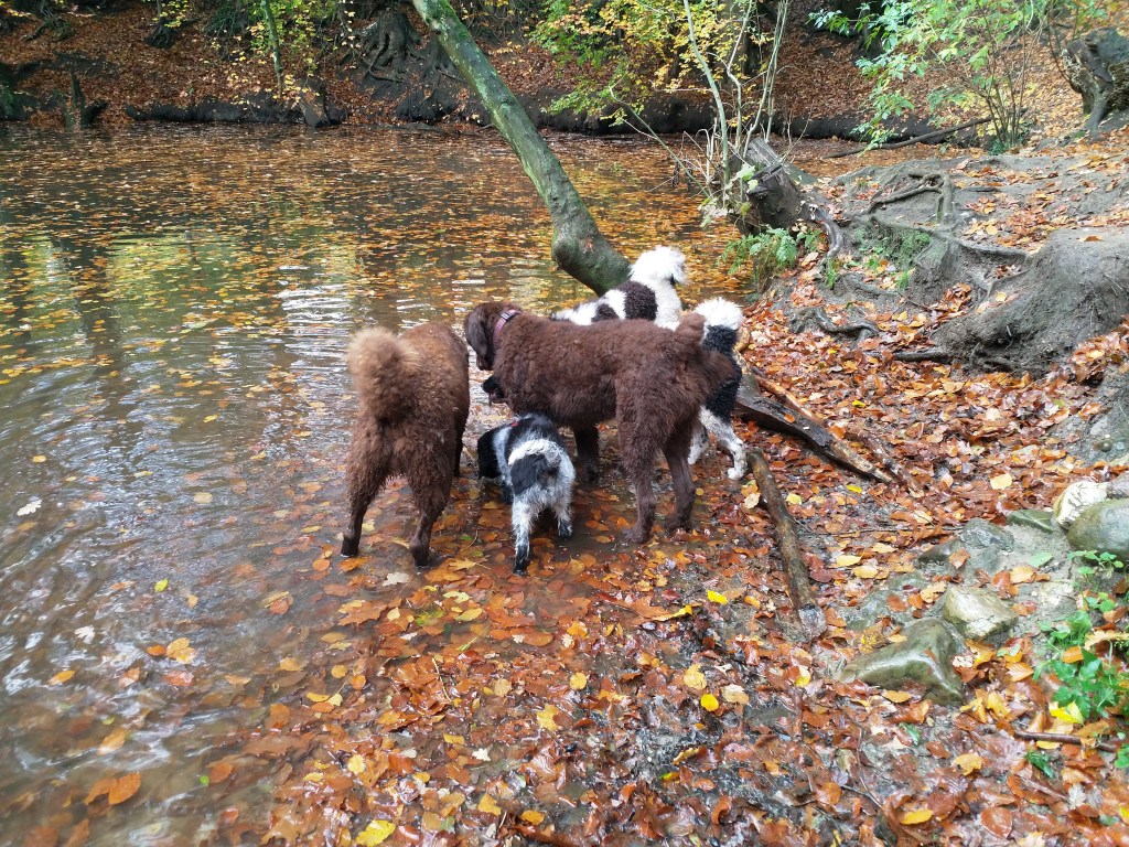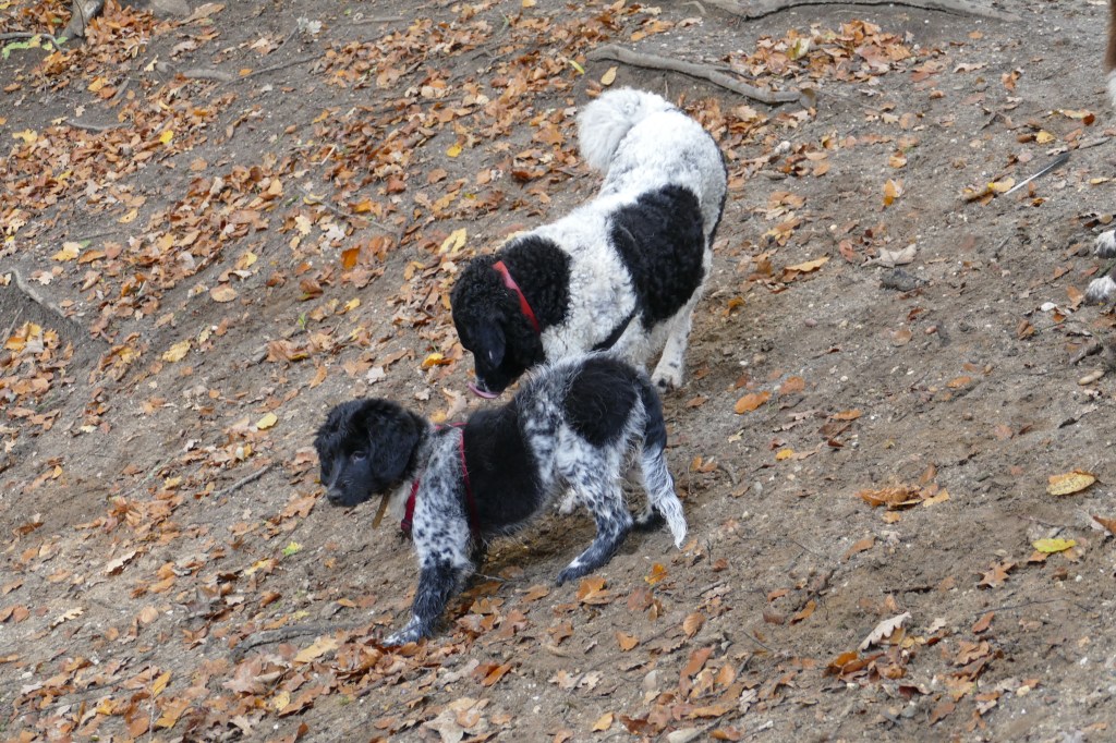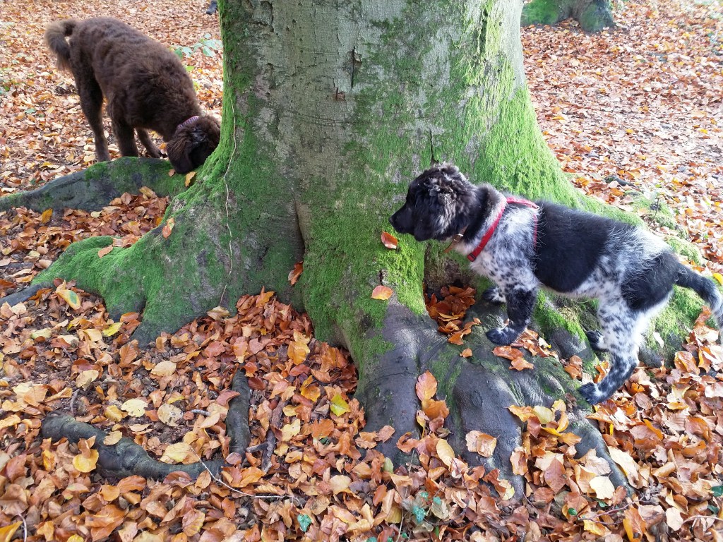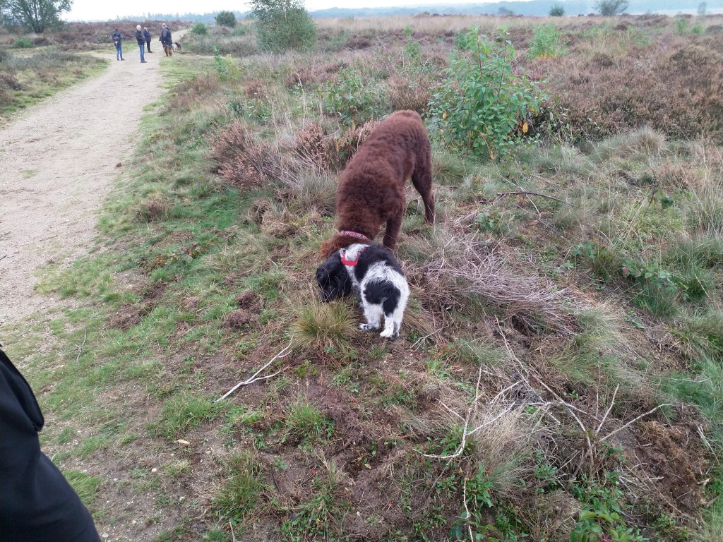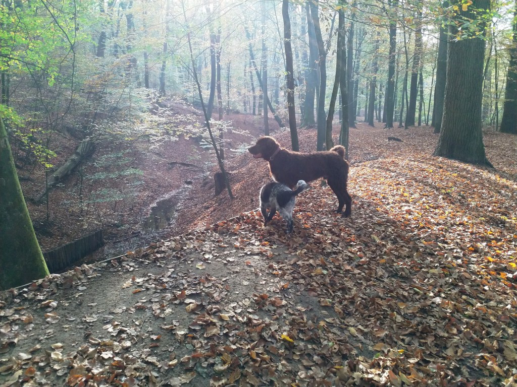 Puppycursus: Ik ben ook met Otto naar puppycursus geweest. Helaas verliep die iets anders dan ik me voorgesteld had. De 1e twee lessen verliep normaal met 9 à 10 pups. Toen kwamen er corona regels en mocht je nog maar met maximaal 4 mensen bij elkaar komen en volgden er 2 lessen met 4 pups. Daarna werden de regels nog strenger en mocht er helemaal geen les meer zijn maar konden we wel met 4 pups komen die dan 20min. met elkaar konden spelen. Zelf moeten we buiten het veld blijven. Dat waren de laatste 2 lessen voor Otto, daarna vertrok hij naar de UK. Otto speelde vrij wild met zijn puppyvriendjes, Stabij, Duitse Staander en Toller. Pups van zijn eigen formaat. Ik denk dat, dat ligt aan zijn opvoeding met en door 3 Wetterhounen.