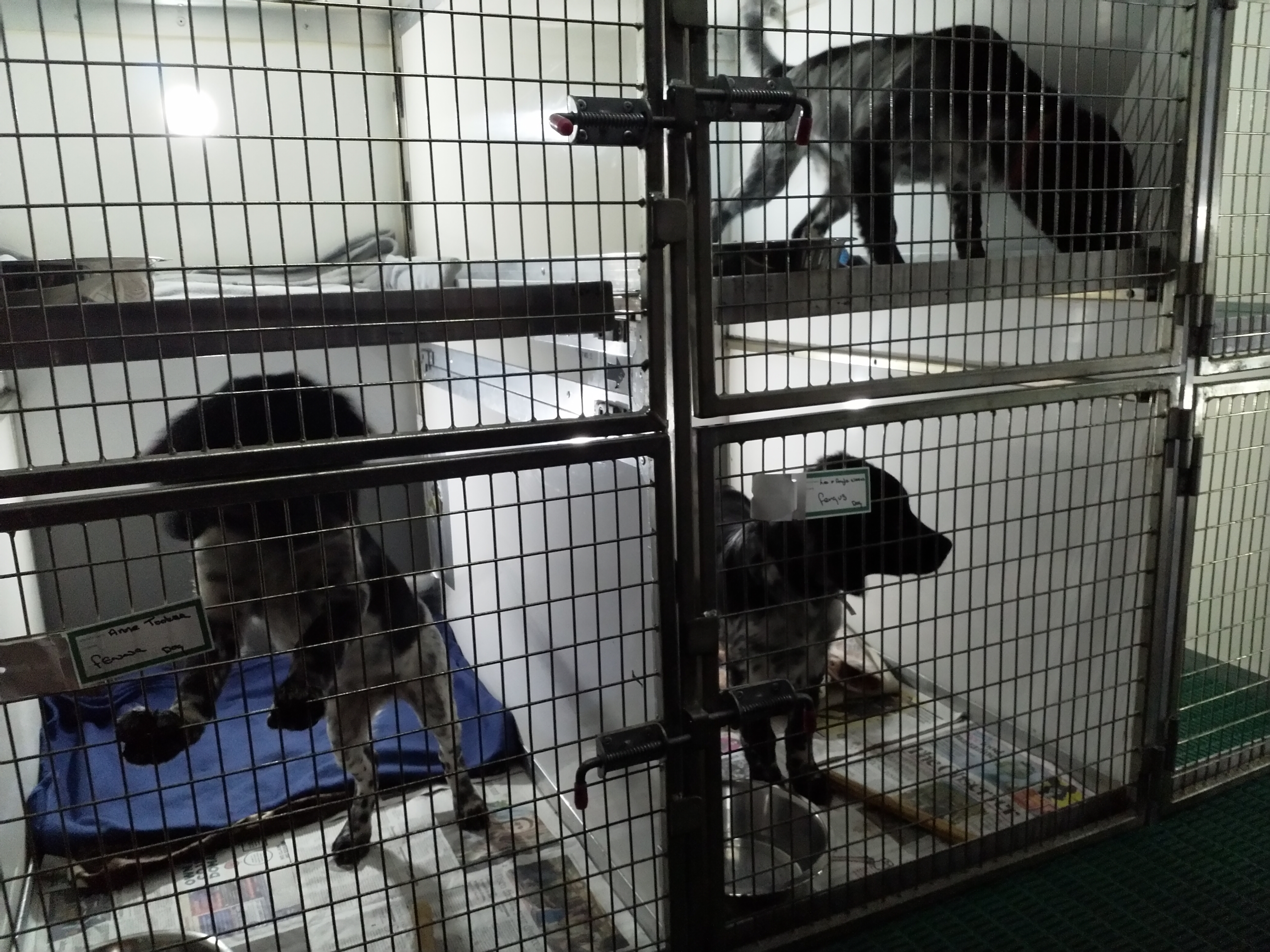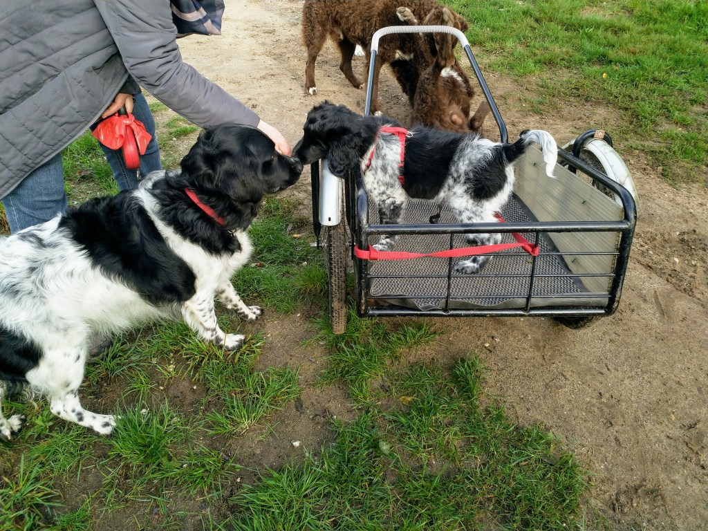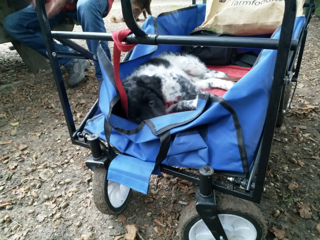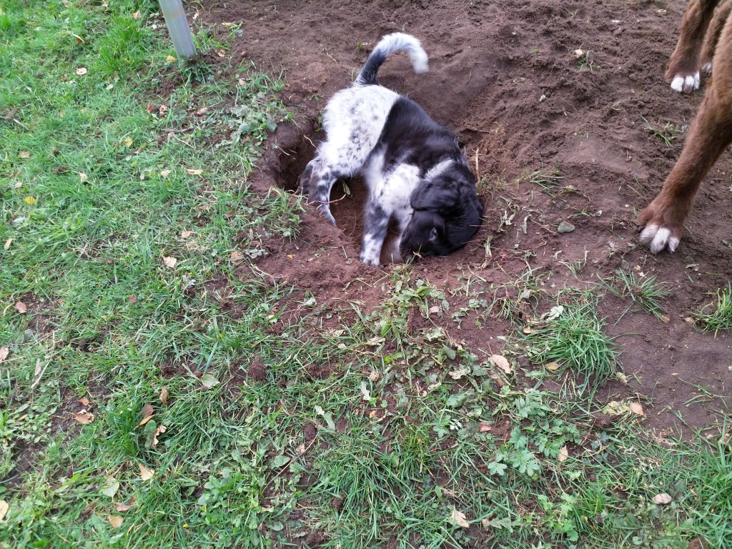 Vertrek: Op 26 oktober is Otto precies 12 weken oud en kan hij tegen Rabiës ingeënt worden. We rijden daarvoor naar Friesland om het door Douwe te laten doen. Hij krijgt ook zijn 12 weken cocktail. Ook de 2 zusjes van Otto, Genesis en Fenna en zijn broertje Fergus zullen op die dag tegen Rabiës ingeënt worden zodat ze allemaal tegelijk naar de UK kunnen verhuizen. Je kunt nog steeds niet vrij reizen op en neer naar de UK zonder 2 weken in quarantaine te moeten. De nieuwe baasjes van de honden kunnen dus niet zelf komen om hun pup op te halen in Nederland. Net als afgelopen zomer met Aafke moeten deze hondjes ook door een diertransporteur opgehaald worden. Er wordt weer gekozen voor Animal Couriers UK net als bij Aafke. Dus is er ook weer een TRACES certificaat nodig. Om de kosten te drukken stel ik voor om de pups op één plek te verzamelen waar ze gecheckt kunnen worden door de NVWA dierenarts en opgehaald door de koerier. Dan heb je maar 1x voorrij kosten. Aangezien niemand zich aanbiedt gebeurt het dus bij ons. Op maandag 16 november worden er aan het einde van de ochtend 3 Stabij pups bij ons gebracht en komt de dierenarts om 14.00uur. Die controleert de chip, de paspoorten en de formulieren. Omdat ik niet zeker weet of Tyske de 3 pups niet als indringers beschouwd houd ik haar apart en doe ik de hondjes in de “puppytuin”. Daar kunnen ze volop met elkaar spelen en ravotten en graven, dat doen ze dan ook vol overgave. Het is een beetje druilerig weer en ik heb het “hutje” weer tot puppykamer omgebouwd met een schone vloer en vetbedden tegen de kou en speelgoed. Daar kunnen ze gaan liggen als ze moe zijn. Door het vochtige weer worden de pups hartstikke smerig en ook de vloer van het “hutje” blijft niet schoon maar ze vermaken zich prima. Om 18.00uur staat Animal Couriers bij ons voor de deur. Alle formulieren en de paspoorten worden nogmaals gecheckt en dan gaan ze, ieder in een ruime kooi met water en schone kleedjes en in gezelschap van een kat, hun nieuwe toekomst tegemoet. Het is niet leuk om ze op deze manier te laten vertrekken maar het is zo wel het beste geregeld nu je niet zelf kunt reizen. De koerier rijdt naar Calais en zal in Frankrijk nog een hondje oppikken. In Calais gaat hij met de honden in een “pet friendly” hotel en probeert de volgende dag zo vroeg mogelijk te boot te nemen naar de overkant. Hij heeft met de eigenaren van de pups afgesproken op een parkeerplaats aan de M6 om de honden daar te overhandigen want ze gaan naar verschillende plaatsen in de UK. Otto gaat naar Londen, Fergus gaat in Schotland wonen, Genesis in het Peak District en Fenna ergens in de buurt van Birmingham. De volgende dag horen we heel laat dat de pups op de boot zitten, om half acht ’s avonds pas. Het blijkt erg druk te zijn, lange files voor de boot en de tunnel i.v.m. de naderende Brexit. De pups hebben hier niet zoveel last van gehad, er was volop gelegenheid om ze uit te laten in Calais. Om half elf ’s avonds krijgen we bericht dat de pups hun baasjes gevonden hebben. Sommige baasjes hebben al vanaf half een op de parkeerplaats gewacht en moeten dan nog een hele reis maken terug naar huis.