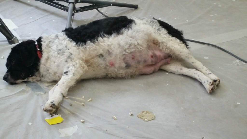 Na 30 dagen kun je een echo laten maken. Dan weet je het zeker want dan kunnen er ook geen vruchten meer geabsorbeerd worden. Er zijn al wel eerder tekenen maar die bieden geen zekerheid. Schijnzwangerschap geeft nl dezelfde symptomen. Zo rond dag 20 na de dekking heeft Tyske opeens geen zin in brokken ’s ochtends en als ze eet, is dat met lange tanden. Dat is heel bijzonder voor Tyske want die kan heel dwingend zijn als het om voer gaat. Lekkere dingen gaan er nog wel in. Eind januari gaan we naar Friesland en op 27 januari maakt Douwe, die dierenarts is, de echo. Hij ziet daar 6 à 7 vruchten op. Tyske weegt op dat moment 27,7kg. Dat is maar iets boven haar normale gewicht van 27,1kg. Daarna gaat ze hard groeien en dat begin je ook aan haar te zien.