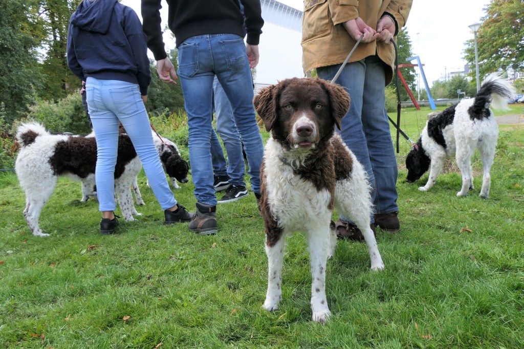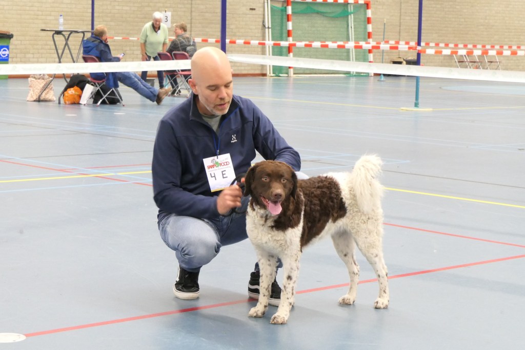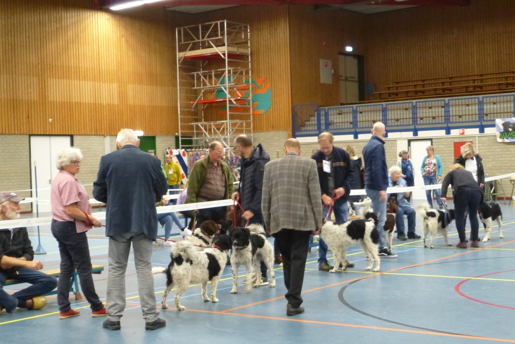 De 2e Fokkersdag van het jaar. Het nest van Tyske en Romke is aan de beurt om gekeurd te worden. Alle eigenaren hebben beloofd te komen met hun hond maar of papa Romke ook aanwezig zal zijn is een groot vraagteken. Alle pups, die al lang geen pups meer zijn, zijn aanwezig en ze herkennen ons nog allemaal. Het wordt een dolenthousiaste begroeting. Ze zijn nu 10½ maand oud en zien er uit als een stel uitgeschoten pubers, nog een beetje smal met lange poten maar dat komt wel goed. Het hoort bij de leeftijd. Het zijn allemaal wel mooie jongens en meisjes geworden, met al mooie gekrulde vachten. Ze krijgen de ene na de andere uitmuntend. De beoordeling van het nest als geheel was weer een groot compliment.