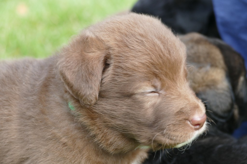 De 4e week is een week van nieuwe dingen. Zo is er voor puppy’s iedere keer weer een moment van de 1e keer van iets. Ze gaan deze week voor de 1e keer naar buiten. De weersvoorspellingen zijn goed, er wordt warm en droog nazomerweer voorspelt. Ook zal er deze week voor de 1e keer op vast voer overgegaan worden, daar zoeken we een rustig moment voor uit.